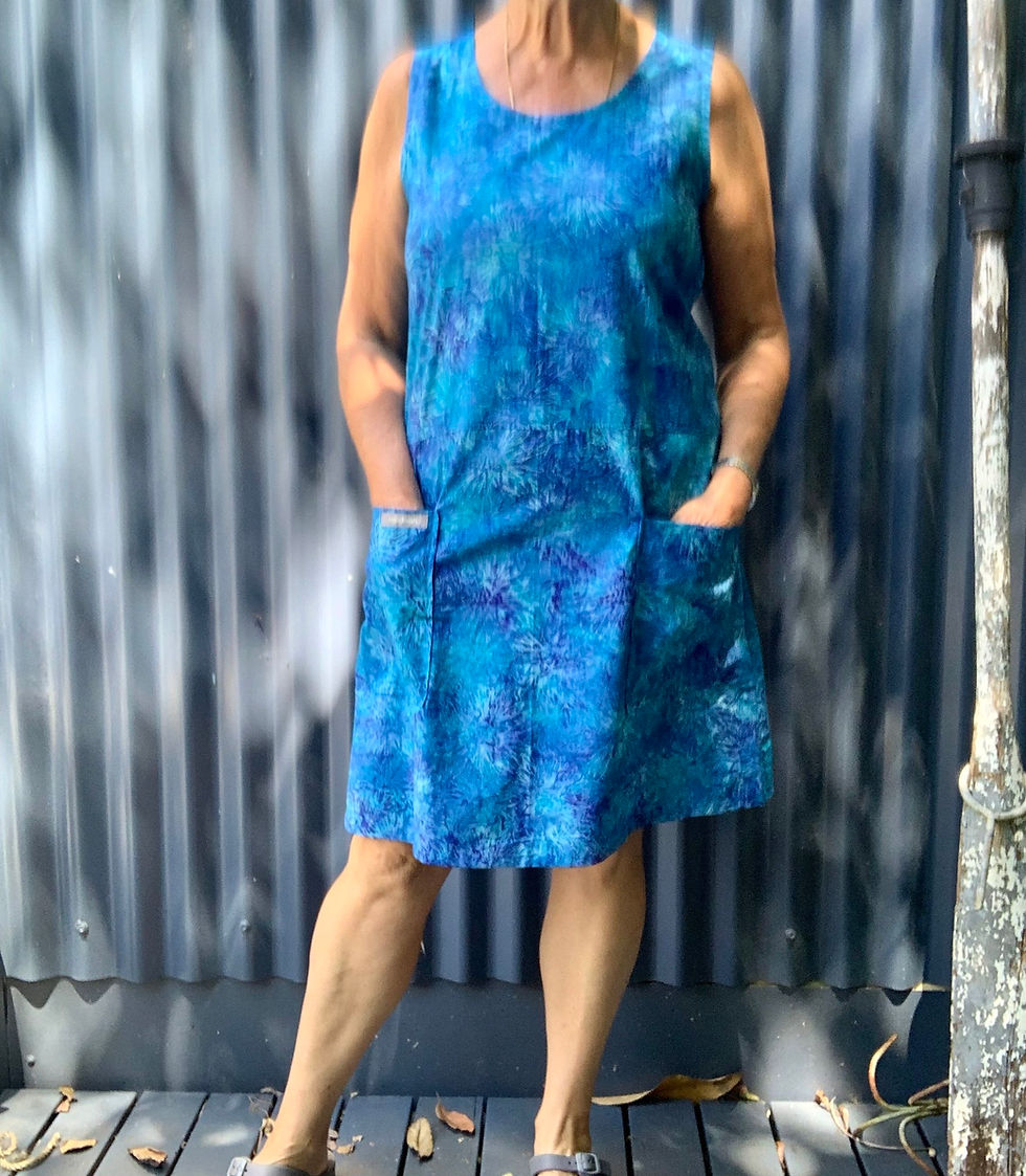 Darwin Shift- Round Neck ‘A’ Line Cotton Dress - Blue Star. Sizes: XS-XXL